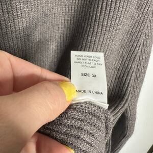 ACOA Women's Mock Neck Gray Ribbed Heart Elbow Patch Sweater Size 3XL NWT