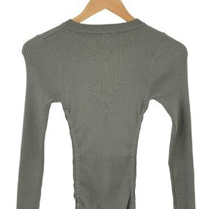 ACOA Collection Scrunch Side Ribbed Stretchy Bodycon Dress Sage Green Small