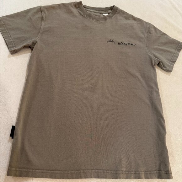 This t-shirt is gently used, in great condition A-COLD-WALL* (ACW*) logo-print t-shirt in a grey/taupe color. Sized Men's Small. No rips or stains.