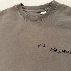 A-COLD-WALL* (ACW*) logo-print t-shirt in a grey/taupe color. Men's Small.