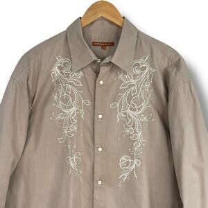 ACORN Bob Goldfeder Mens Pearl Snap Long Sleeve Shirt Embroidered Tan Beige XXL