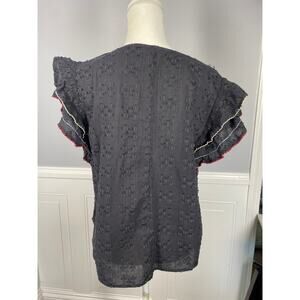 ACOS&A, Size Large, Black Blouse, Embroidered, Flutter Sleeve, Boho, Tassel