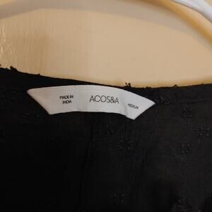ACOS&A Size Medium M Cotton Black Blouse Flutter Sleeve Textured Boho Career