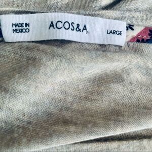 Cute long sleeve pullover tunic/top. Round neckline. High-low hemline with brown ruffle trim. No flaws. Lightweight polyester/spandex fabric. ACOS&A. Size Large