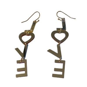 These LOVE dangle earrings in shiny acrylic have a mirrored back and a heart shaped O that will give a fun vibe whenever you wear them!