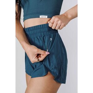 ACTA High Waist Athletic Shorts with Liner Storm Teal Size Small