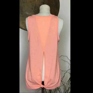 activ8, mesh tank top, coral sleeveless tee, yoga muscle tee, tie-back design, women's activewear, size medium, new with tags