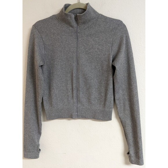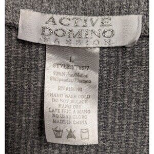 The ACTIVE DOMINO Fashion Heather Gray Nylon Stretch Full Zip Athletic Jacket in size Large is a versatile and stylish outerwear piece designed for women's activewear. Made from a blend of nylon and spandex, this jacket features a solid gray color and a short length with long sleeves and a full zip closure. Its athletic fit and thumb holes make it perfect for outdoor activities, athleisure, and sports. Machine washable and suitable for all seasons, this basic jacket from Active Domino Fashion is a practical and fashionable choice for active women on the go.