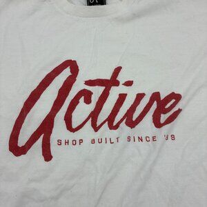 ACTIVE SKATE SHOP T-SHIRT IN EXCELLENT CONDITION, NO RIPS, TEARS, OR FADING.