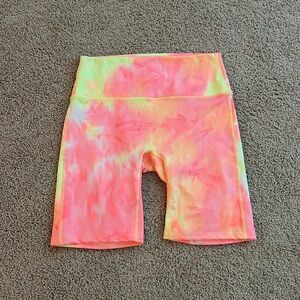 ACTIVE TIE DYE HIGH WAISTED BIKER SHORTS - NEON YELLOW / PINK XL