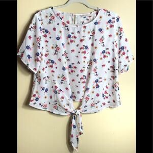 ACTIVE USA Floral Print Tie Front Top - Sz Lg