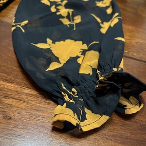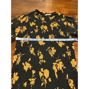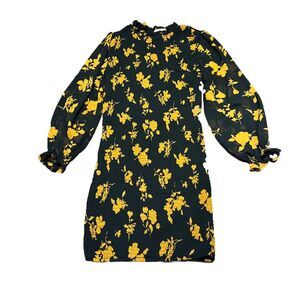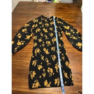 ACTIVE USA WOMENS BLACK AND YELLOW FLORAL BODYCON MINI DRESS SHEER SLEEVES SZ M