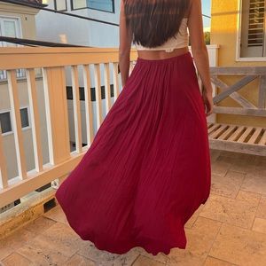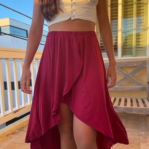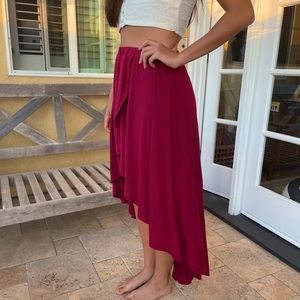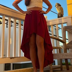 Gorgeous flowy skirt in a deep red color. High/low hem with an elastic waistband. Worn once! Fits S to M. Brand is Timing from Active.
