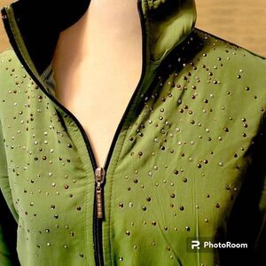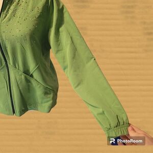 AC-TIV-OLOGY Womens Medium Green Metal Studded Accent Full Zip Jacket Size Medi
