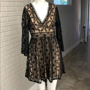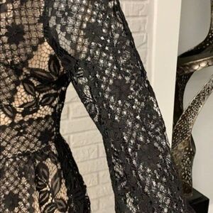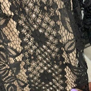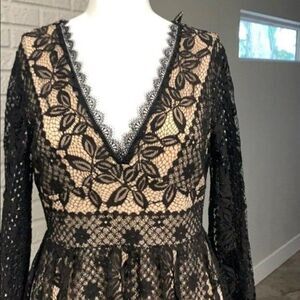 Elegant black lace mini cocktail dress, with hidden zipper closure .