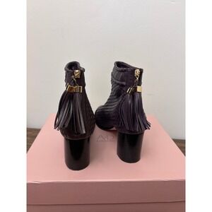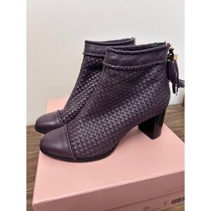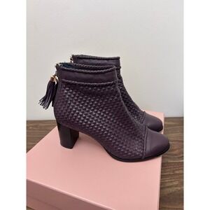 A.D. & Daughters Woven Leather Heeled Ankle Boots Size 8M Aubergine Fig Tassel