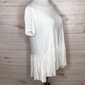 Ivory Relaxed Ruffle Tee. So comfy.... flexible sizing depending on how you’d like it to fit. Great top for layering under cropped sweaters or cardigans. ☺️