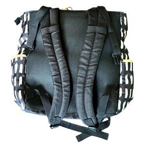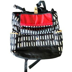 A.D. Sutton & Sons Black, White and Red Patterned Diaper Backpack Bag with Two Interior Insulated Pockets and One Zippered and One Open Interior Pocket; One Exterior Front Pocket and Two Exterior Side Pockets for Bottles
