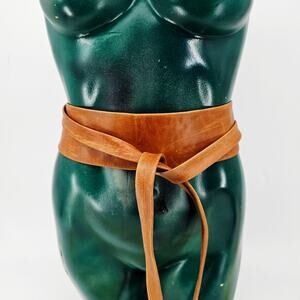 ADA Midi Leather Wrap Belt Tan Brown One Size Boho Chic Bohemian Earthy Lange