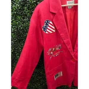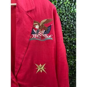 ADAM DOUGLASS Red Vintage Linen Blazer Patriotic My Country Flag Size L