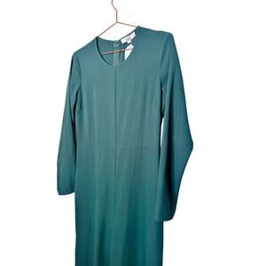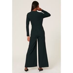 ADAM LIPPES Dark Green Crewneck Long Sleeve Wide Leg Sleek Jumpsuit Size 2