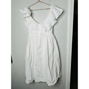 ADAM LIPPES White 100% Cotton Hourglass Cap Sleeves Eyelet Ruffle Dress size 10