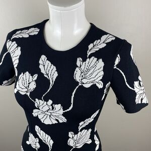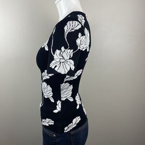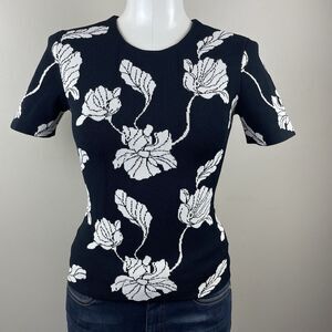 ADAM LIPPES XS Floral-print Short-sleeved Top In Black Designer Luxury Classic. Condition is Pre-owned - Excellent. Shipped with USPS Ground Advantage.