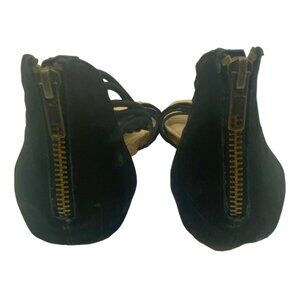 ADAM TUCKER Women Sandals Size 8 Black Me Too Cali Leather Flat Summer Beach s-9