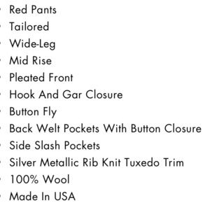 NWOT ADAPTATION Red Wool Metallic Side Striped Tailored Trousers Pants