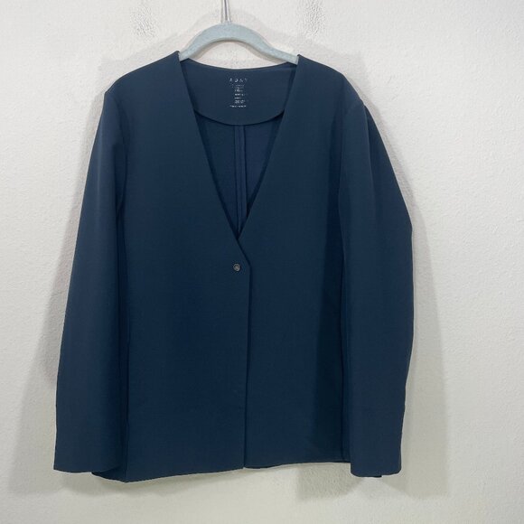ADAY Blazer Strategy Large Collarless in Midnight Blue One Snap Button V-Neck