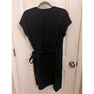 ADAY Super Cool Wrap Mini Dress V-Neck Black L Resort versatile capsule Preppy