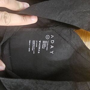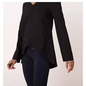 ADAY women’s black linen top in size small. Double V-neck pullover with stretch.
