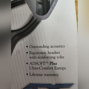 Clinical headset boasts reinforcing yoke molded into the flexible 22" PVC tubing and stainless steel binaurals fixed at 15º angle for greater comfort