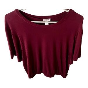 Color: Maroon. Cool Rayon/Spandex. Scoop Neck. Elasticated Waist. Approximate Measurements: Pit to pit:’20. Length:’19. No Stains or Tears. Smoke Free Home