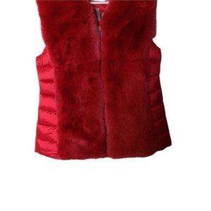 ADD Young Girls Size 8Y Real Rabbit Fur Trimmed Duck Down Vest Cranberry Red