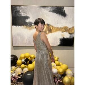 ADDISON EVENINGS Gold Gown Glitter Metallic Dress Sleeveless V-Neck 8 NWT