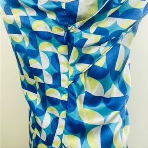 Anthropologie ADDISON womens blue silk geometric print peekaboo shift dress XS