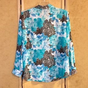 Elegant ADDITIONS BY CHICOS Size 3 Long Sleeve Floral Blouse...Sleeve Length=approx. 23 inches, armpit to armpit=approx. 23 inches, Length=approx. 26 inches...I like to put disclaimers with all of my used/pre-owned clothes, you might see tiny flaws, like a pinhole from a sales-tag, or tiny sequins/beads missing that make it difficult to notice. I endeavor to do my best to find the major flaws and point them out :)
