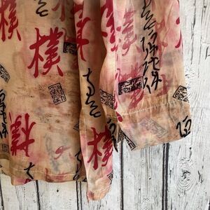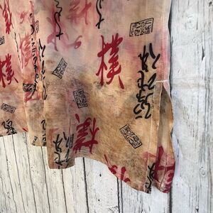 ADDITIONS By Chic's Womens Asian Calligraphy Button Up Top Size L/12 Silk Linen