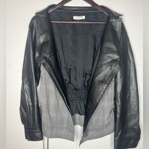 ADEAM Oversized Ruched Jacket Gray Plaid with faux Leather Sleeves