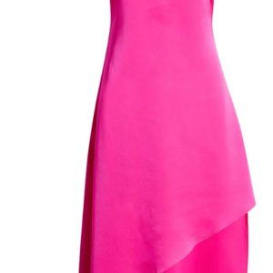 Make a daring entrance in our Nanci Strappy Asymmetrical Crepe Dress featuring a dramatic asymmetrical hem that will surely turn heads. Flowy yet sexy, this dress features a criss-cross back making you want to look back at it for the ‘gram. Finished in a bold hot pink color this gorgeous dress is made for a fabulous party.