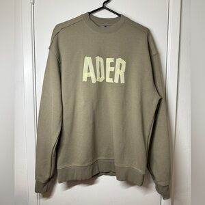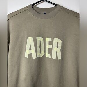 ADER ERROR Tape Logo Spellout Beige Green Pullover Sweatshirt Size A1 US Size S