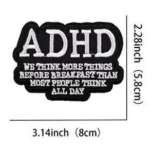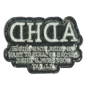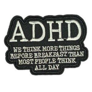ADHD We think more things before breakfast... Black White Embroidered Patch