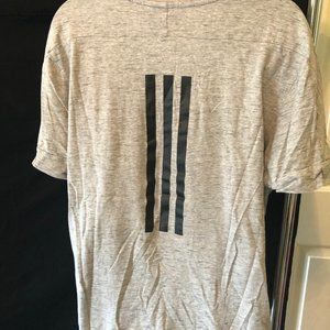 Grey ADIDAS tshirt with 3strip detail on the back. Square ADIDAS logo on front. EUC