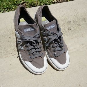 ADIDAS VIBETOUCH ENHANCED COMFORT SYSTEM PRE OWN CASUAL TENNIS SHOE GREAT CONDITION SIZE 11 color light brown with gray strips