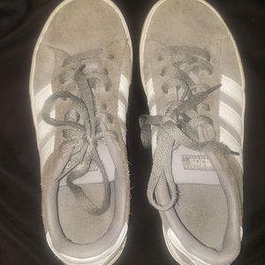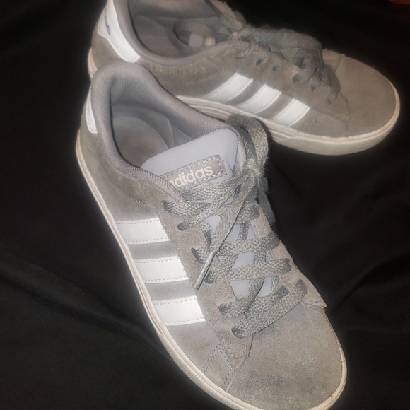 GRAY ADIDAS TENNIS SHOES. SIZE 2.