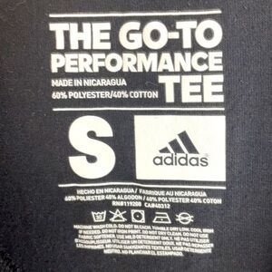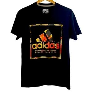 ADIDAS | ADIDAS BLACK ORANGE GRAPHIC LOGO SHIRT, SIZE SMALL