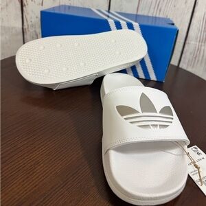 ADIDAS ADILETTE tri foil logo graphic slides in white size 7 womens 6 mens nib