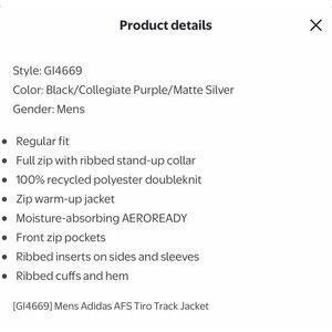 ADIDAS AFS TIRO Mens Track Training Jacket GI4669 Size XL Black Purple Aeroready