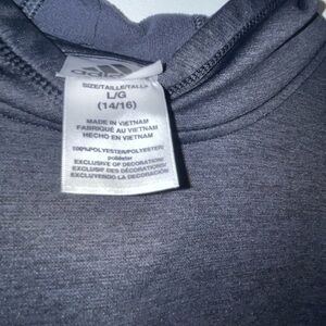 ADIDAS BOYS Black OVERSIZED GRAPHIC HOODIE JUMPER Size 14/16 soft light fleece feel inside. Has a spot please review pics carefully.